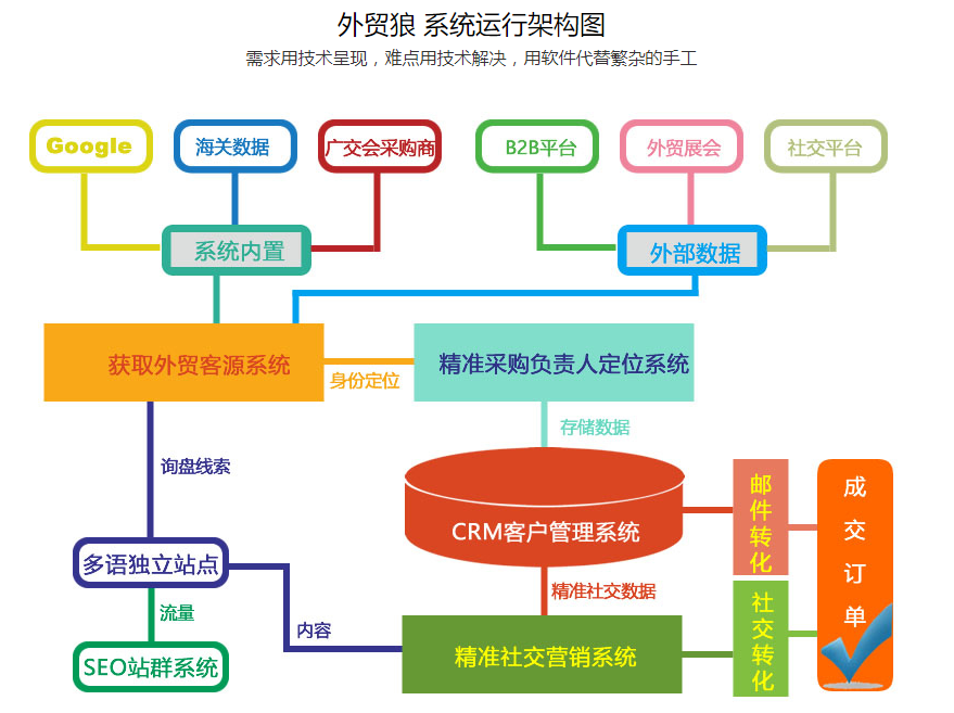 從外貿牛系列,多語(yǔ)種語(yǔ)言建站,圍繞外海網(wǎng)站優(yōu)化SEO和搜索引擎競價(jià)SEM,和海外社交營(yíng)銷(xiāo);又添加主動(dòng)營(yíng)銷(xiāo)利器外貿狼。兩大產(chǎn)品結合VR全景,整合全網(wǎng)營(yíng)銷(xiāo)外貿。讓每一個(gè)散落在互聯(lián)網(wǎng)上的數據,及您的歷史詢(xún)盤(pán)數據、海關(guān)數據和展會(huì )數據,都能發(fā)揮出最大的作用。精準海外數據營(yíng)銷(xiāo)——更精準、更高效、提升了每個(gè)客戶(hù)詢(xún)盤(pán)客戶(hù)的轉化!